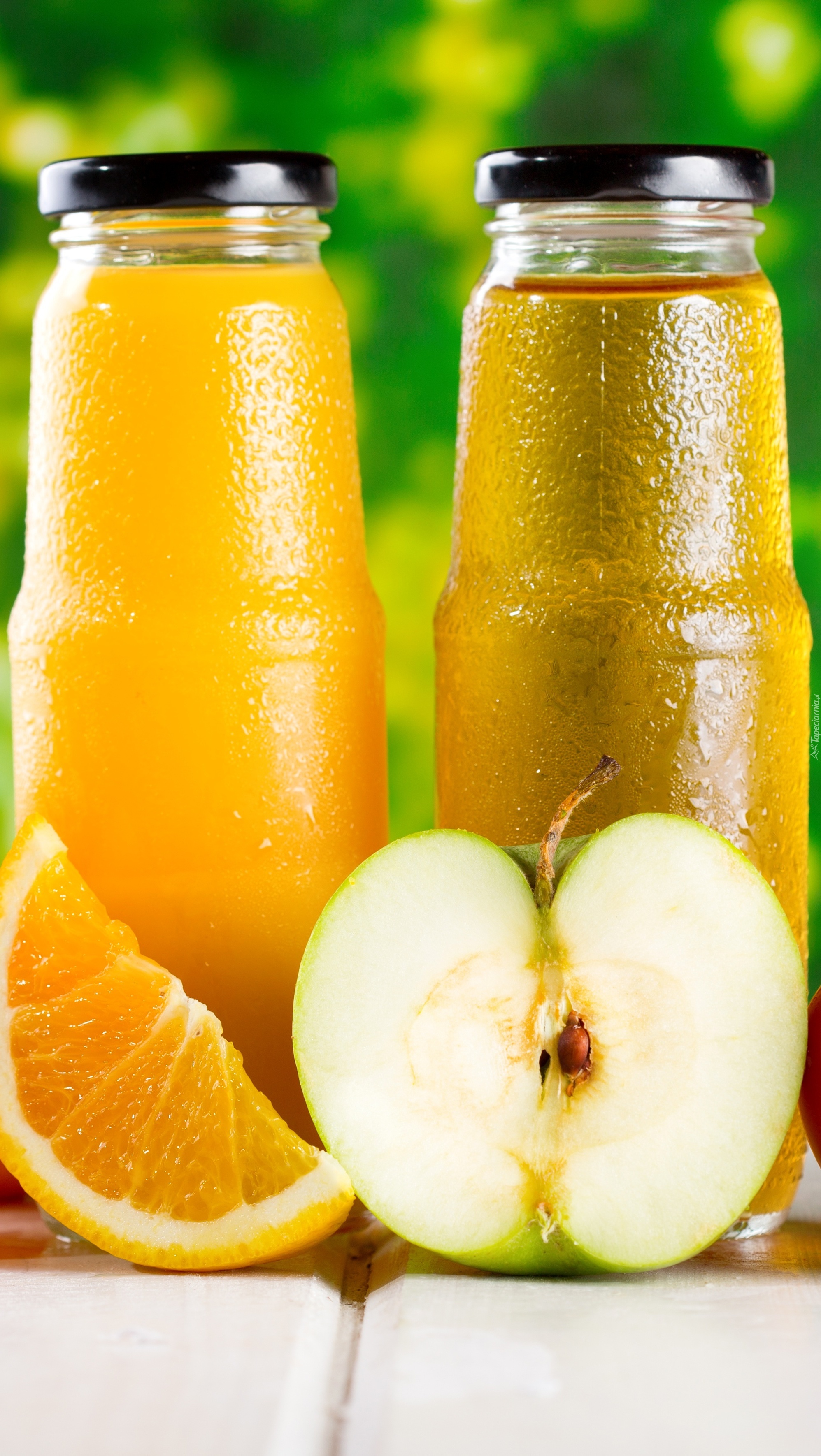 Edytor tapety: Soki w butelkach i owoce