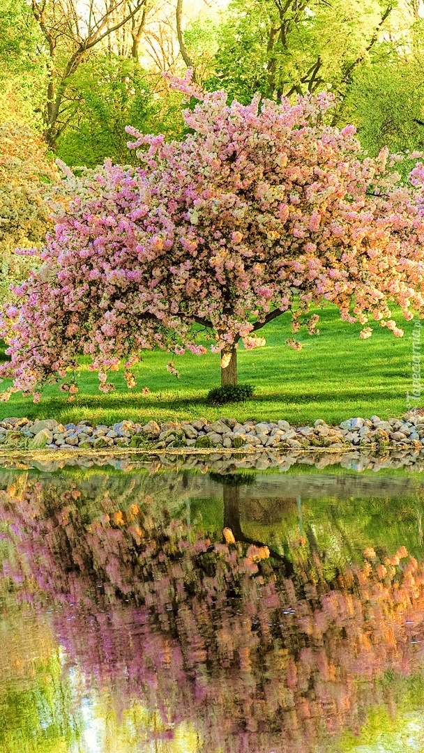 Edytor tapety: Kwitnące drzewko w parku