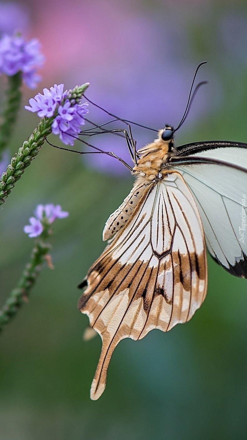 Edytor tapety: Motyl na fioletowym kwiatku