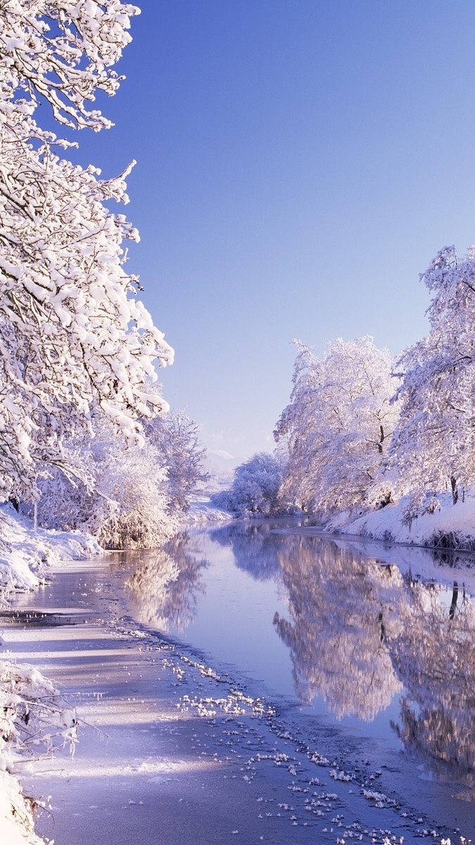 Edytor tapety: Ośnieżone drzewa nad rzeką