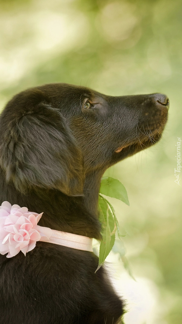 Edytor tapety: Wyżeł niemiecki długowłosy z różową wstążką