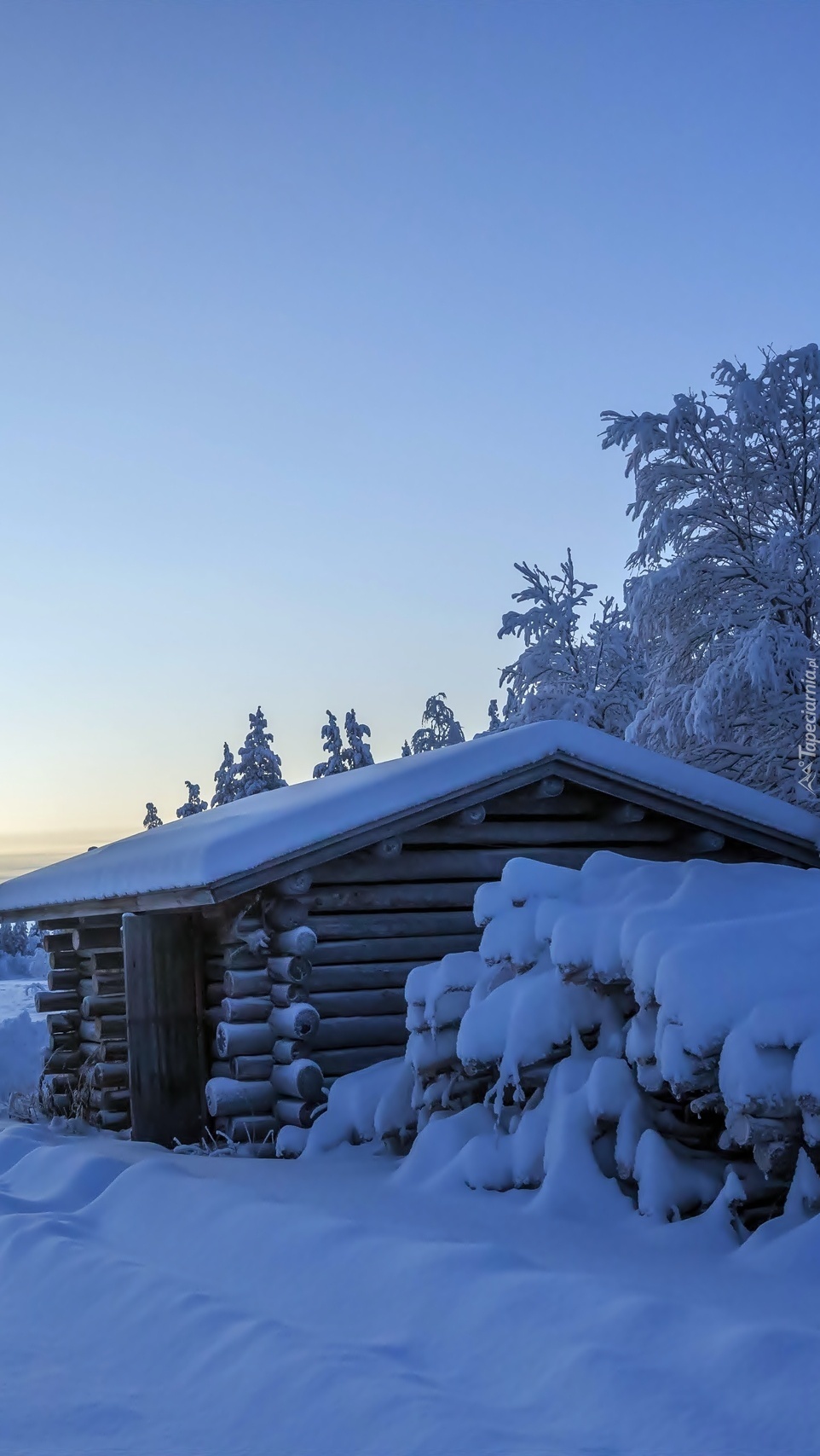 Edytor tapety: Zasypany śniegiem domek