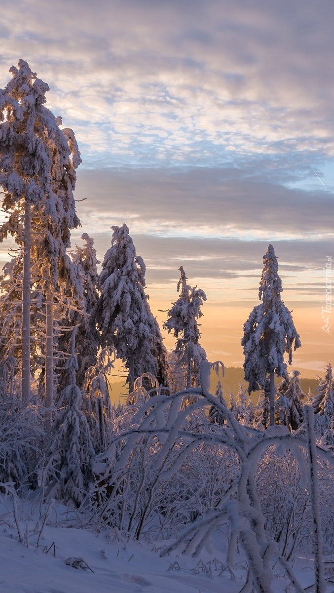 Edytor tapety: Zimowe drzewa o wschodzie słońca