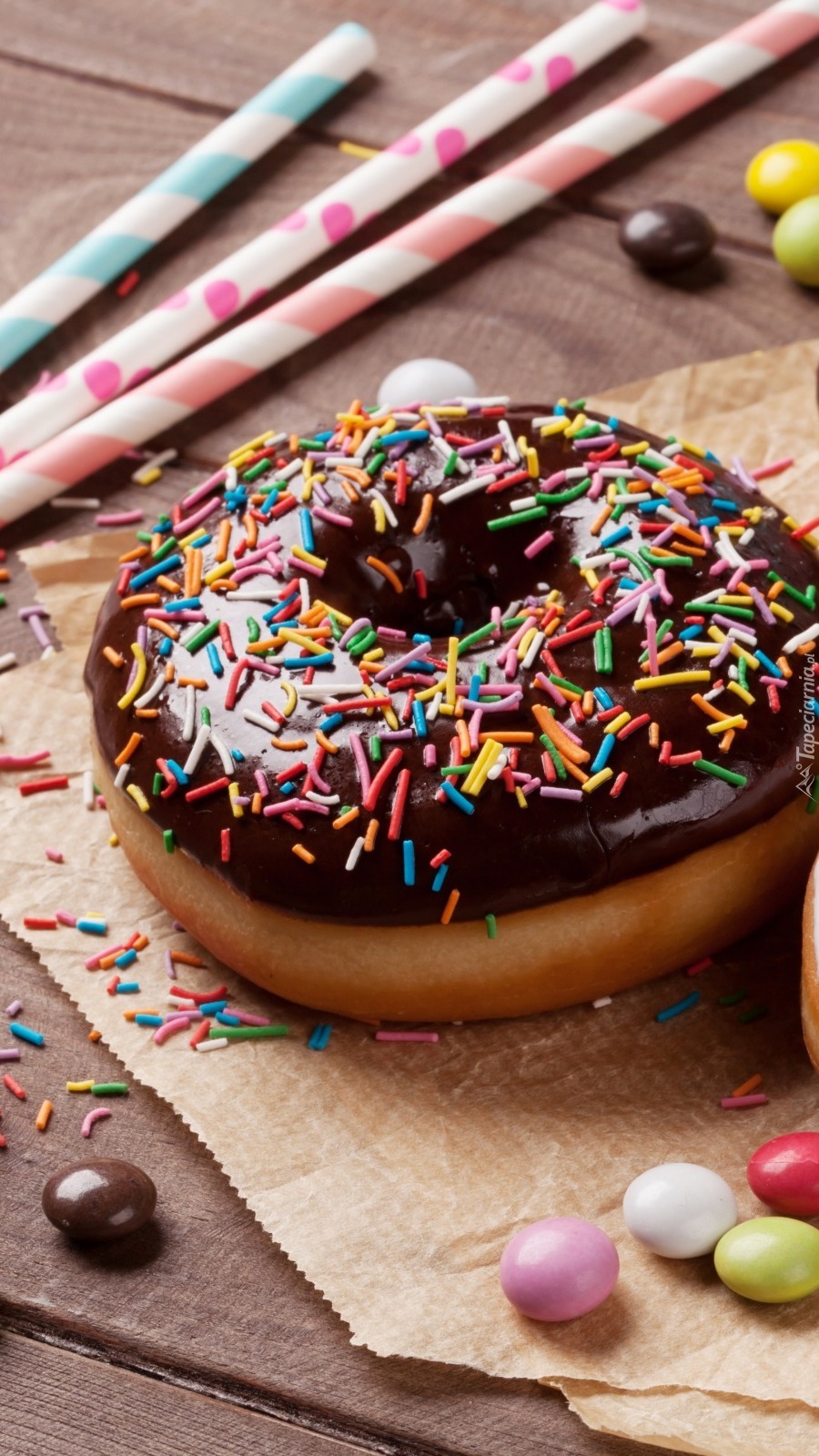 Edytor tapety: Donut w polewie czekoladowej z posypką