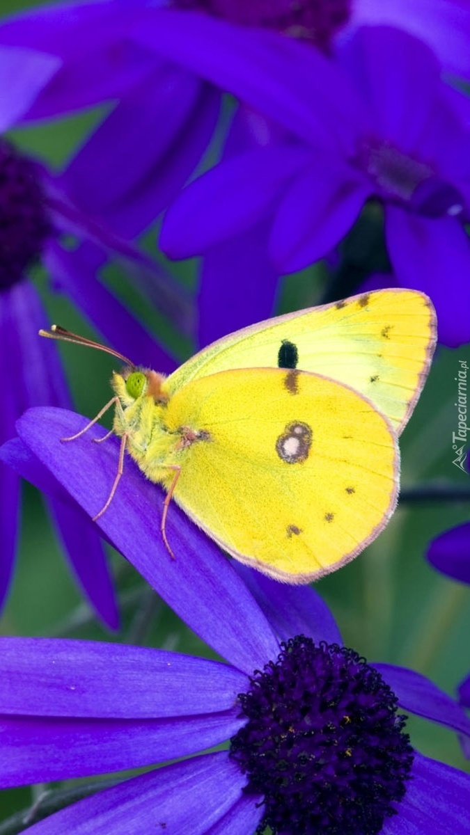 Edytor tapety: Żółty motyl na fioletowym kwiatku