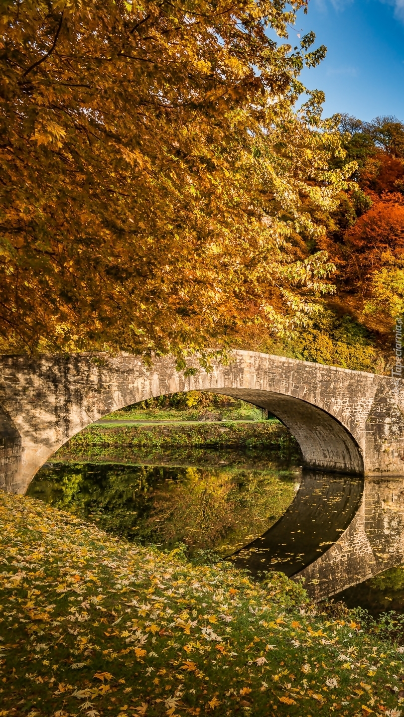Edytor tapety: Kamienny most nad jesienną rzeką