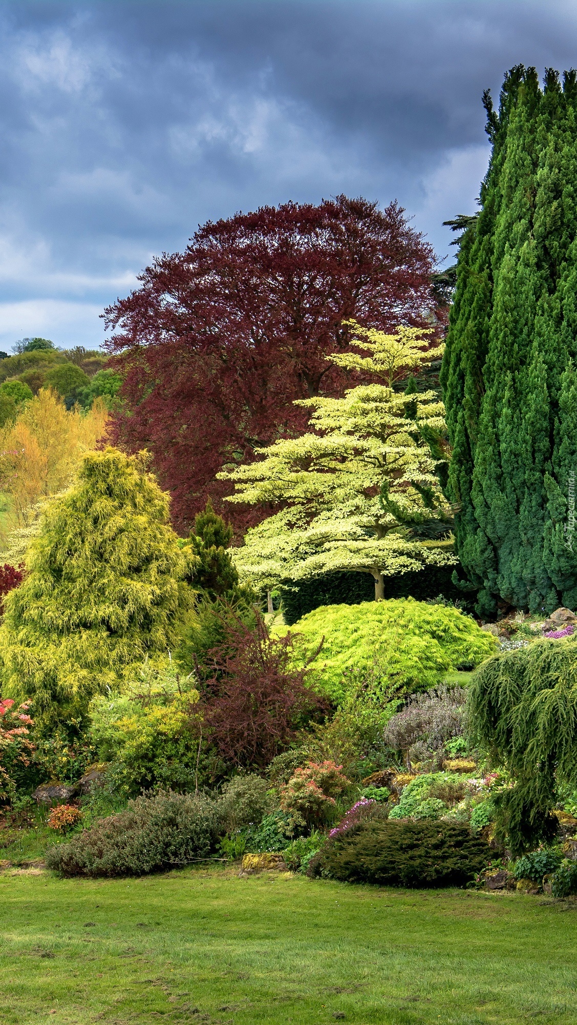 Edytor tapety: Kolorowa roślinność w parku