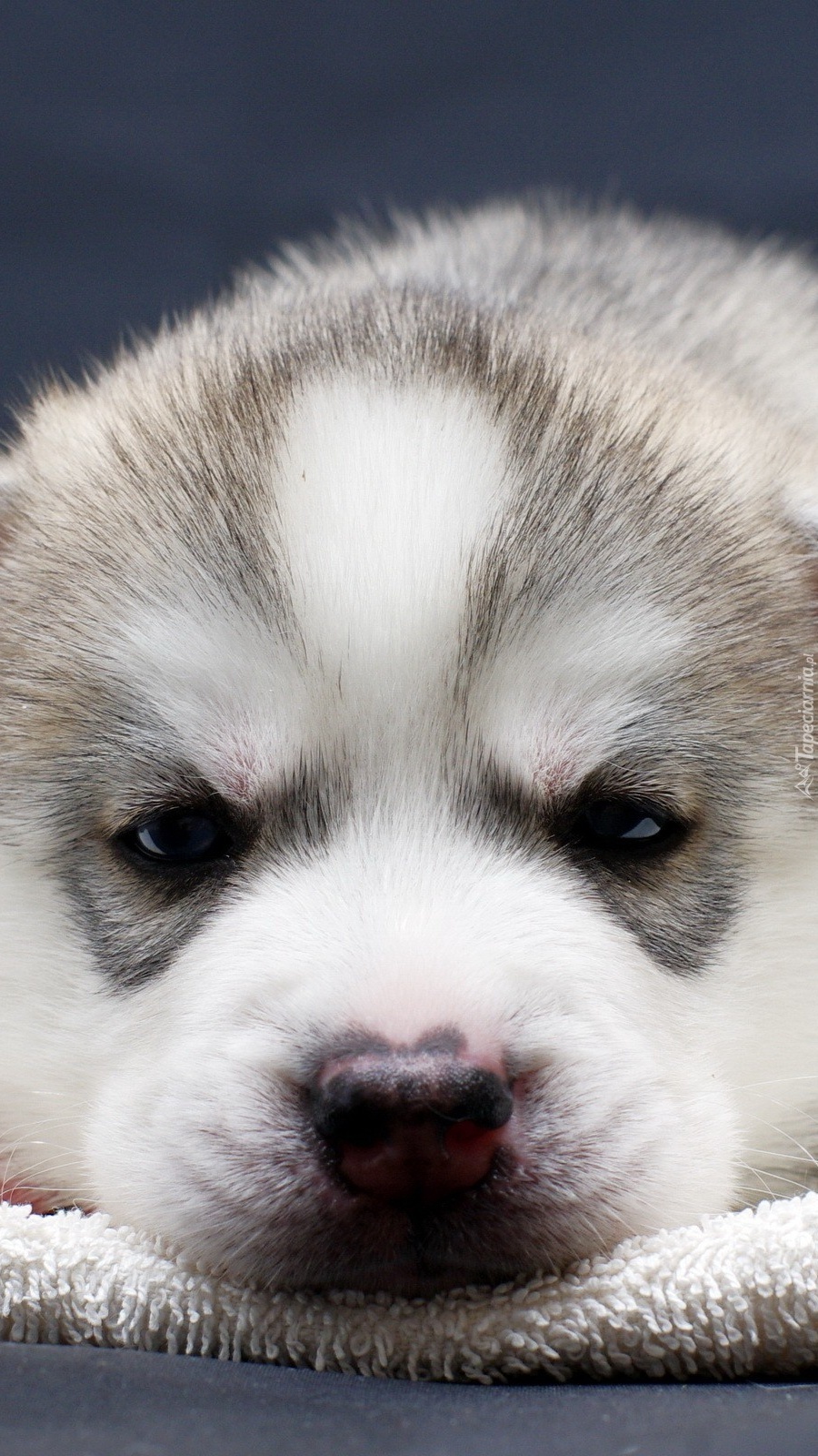 Edytor tapety: Husky na białym kocu