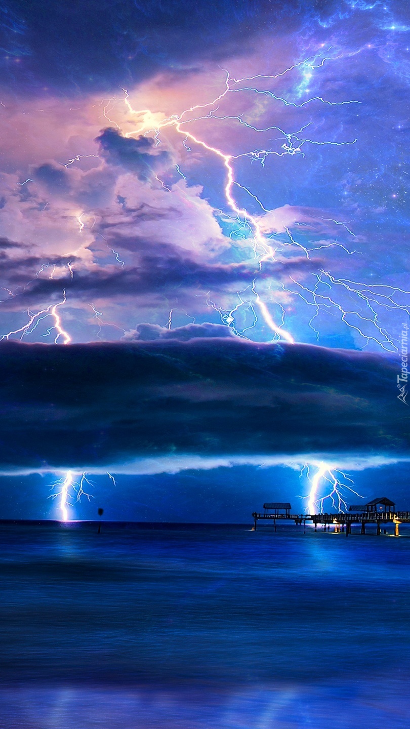 Edytor tapety: Błyskawice nad morzem