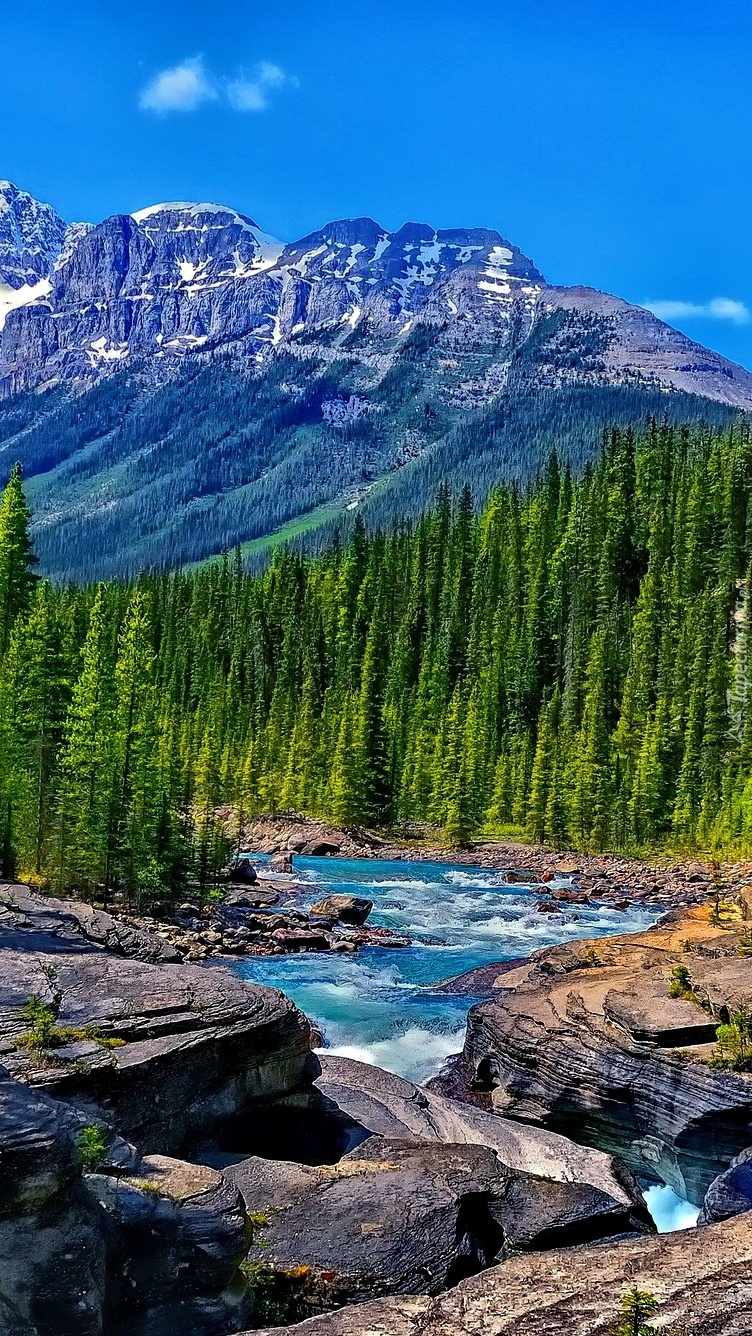 Edytor tapety: Górskie jezioro i świerki