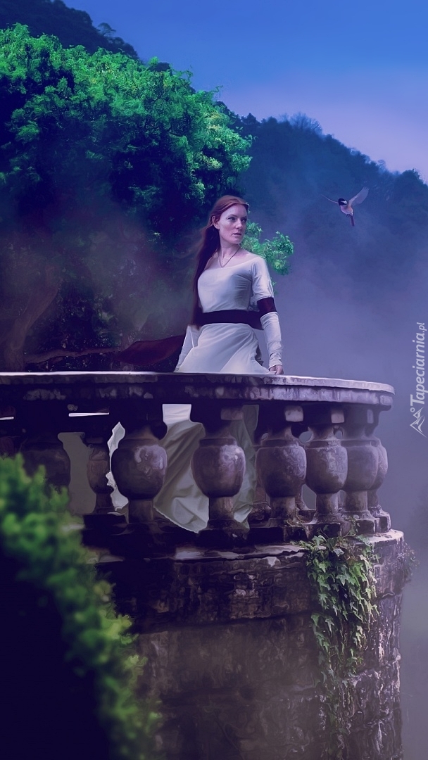 Edytor tapety: Dziewczyna na zamkowym balkonie