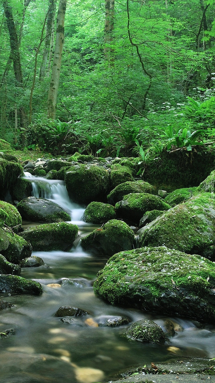 Edytor tapety: Strumień w zielonym lesie
