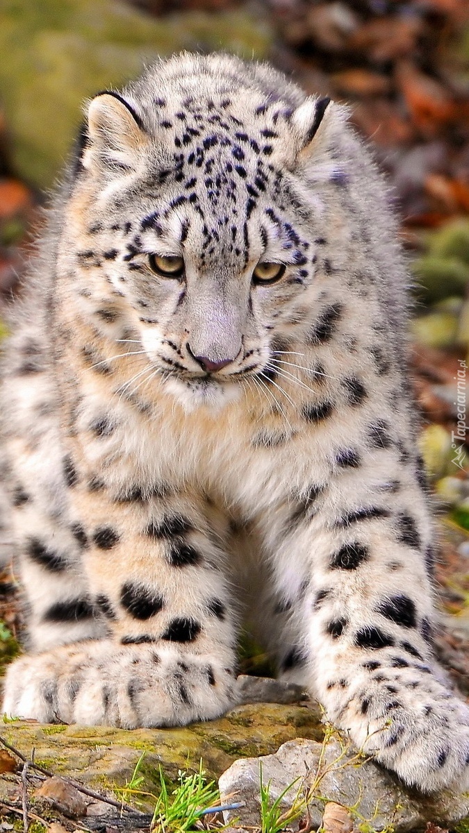 Edytor tapety: Irbis na kamieniach