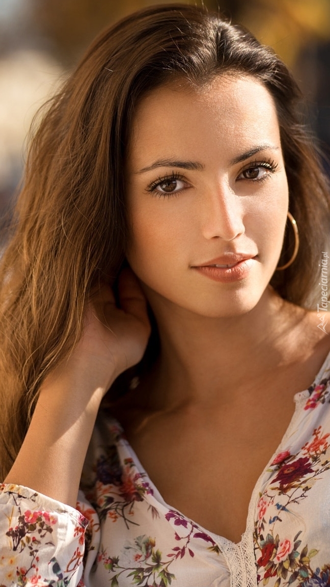 Edytor tapety: Kobieta odgarnia włosy z lekkim uśmieszkiem