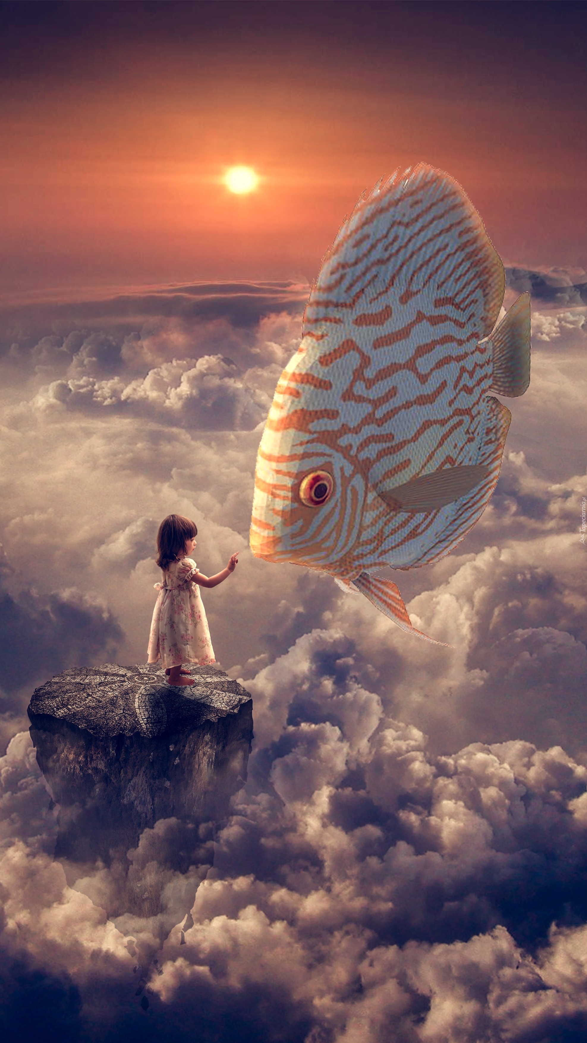Edytor tapety: Dziewczynka oko w oko z rybą
