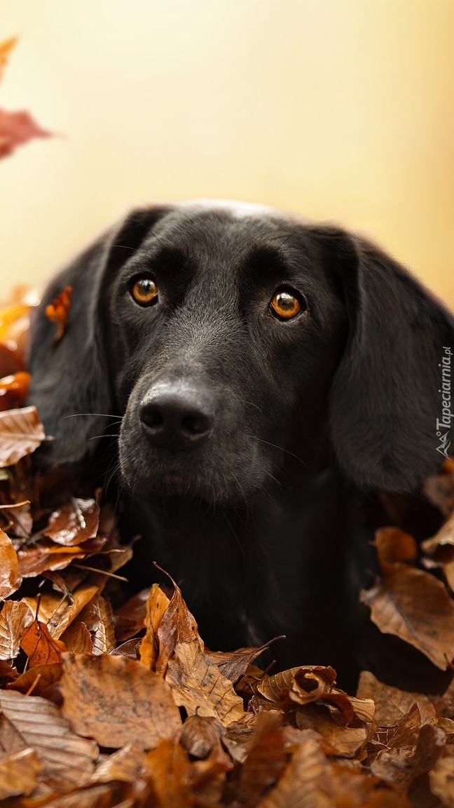 Edytor tapety: Czarny piesek zakopany w liściach