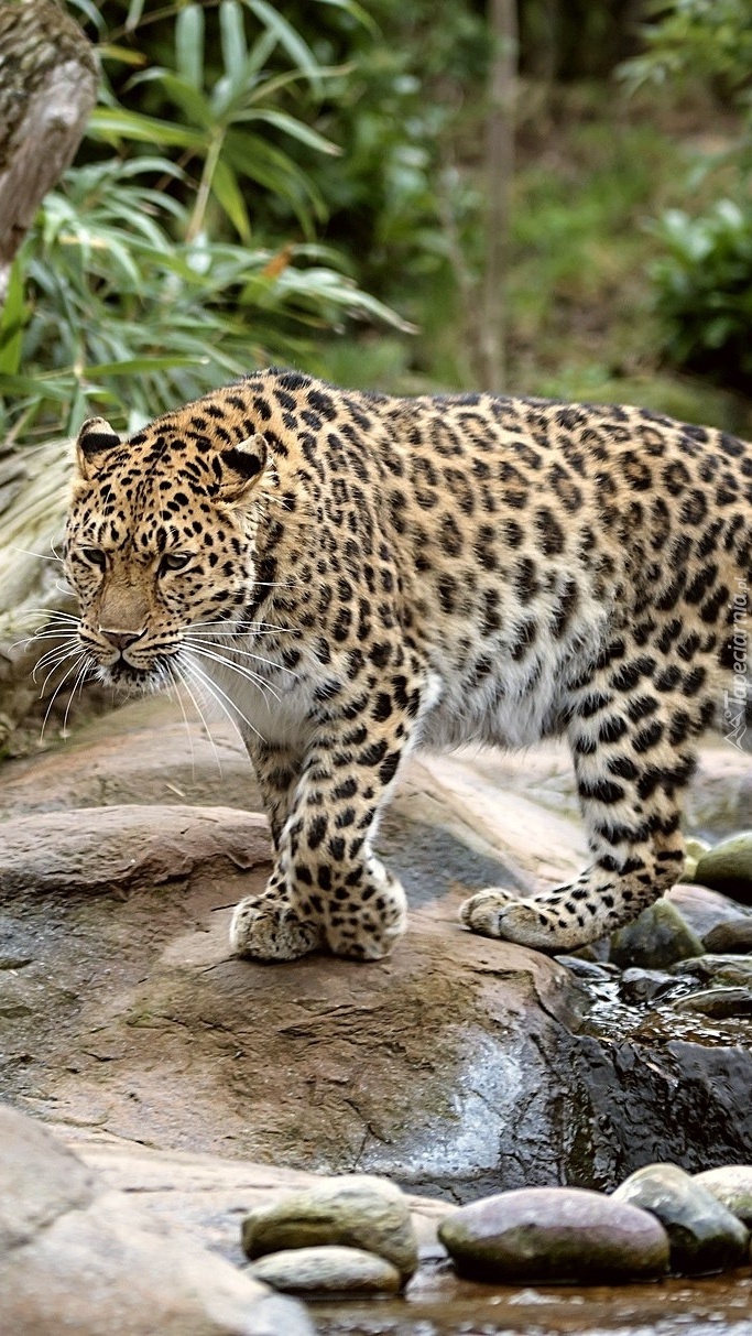 Edytor tapety: Lampart na kamieniach