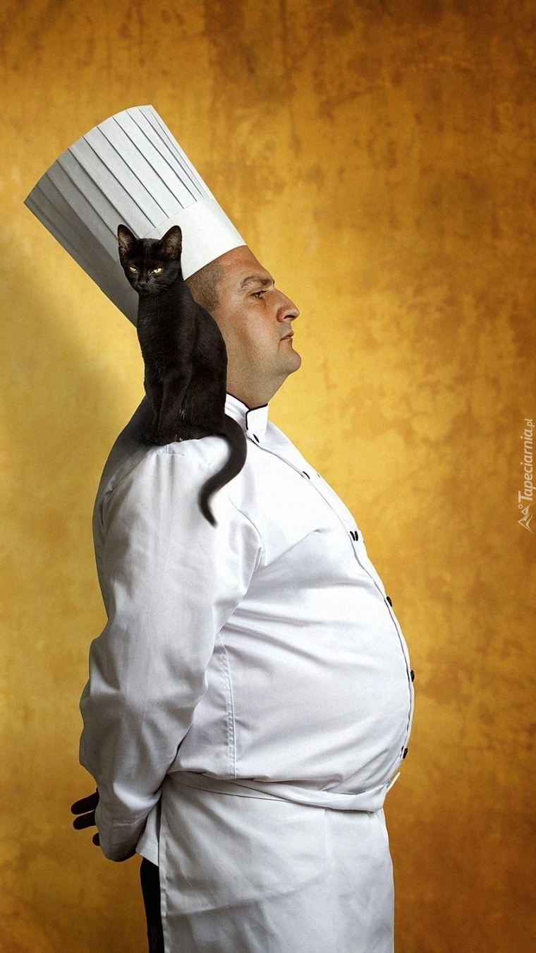 Edytor tapety: Gruby kucharz z czarnym kotem