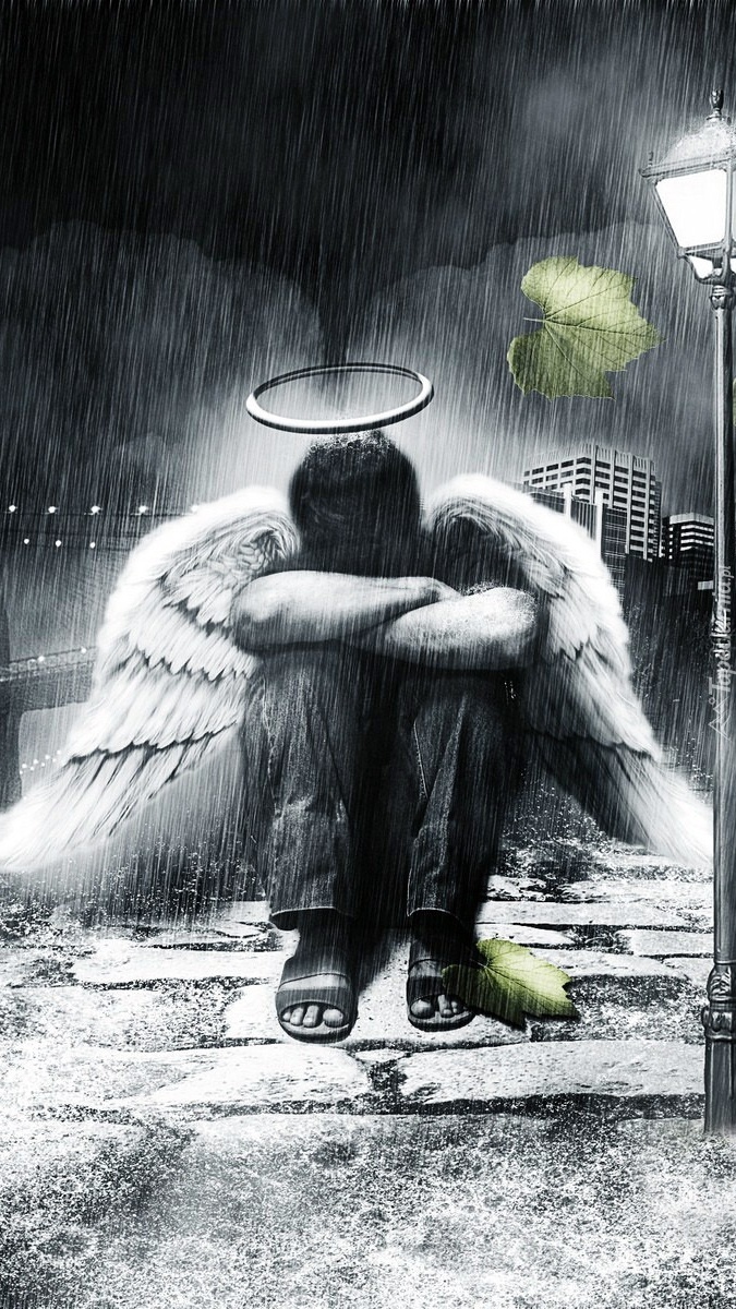 Edytor tapety: Anioł na moście w deszczu nocą