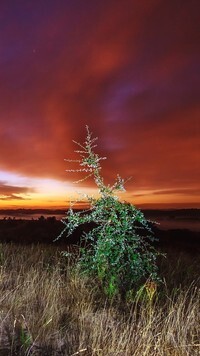 Edytor tapety: Drzewko w trawie o zachodzie słońca