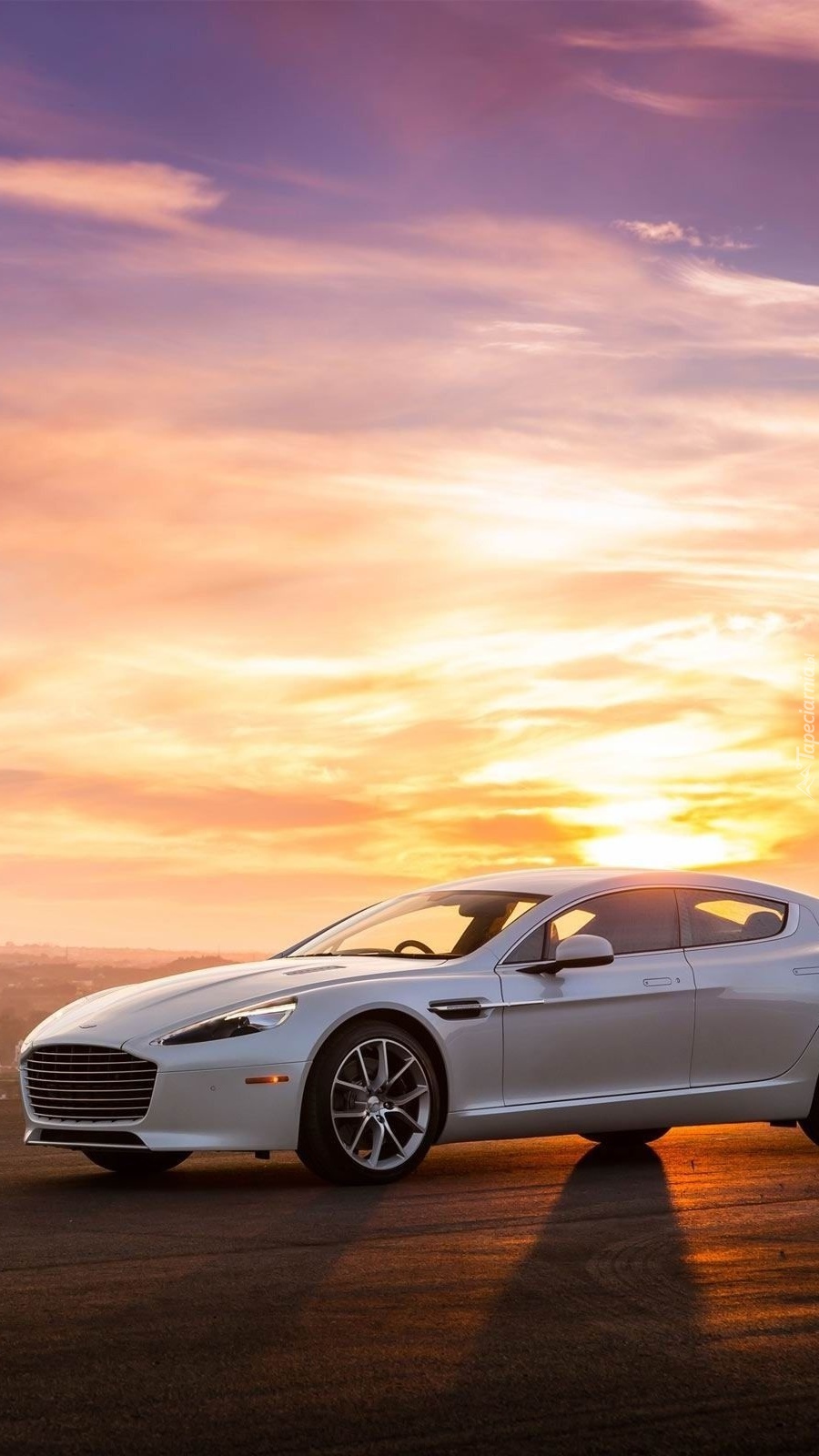 Edytor tapety: Aston Martin w tle zachodzącego słońca