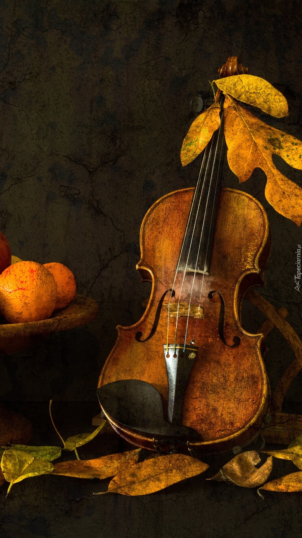 Edytor tapety: Skrzypce w jesiennych liściach