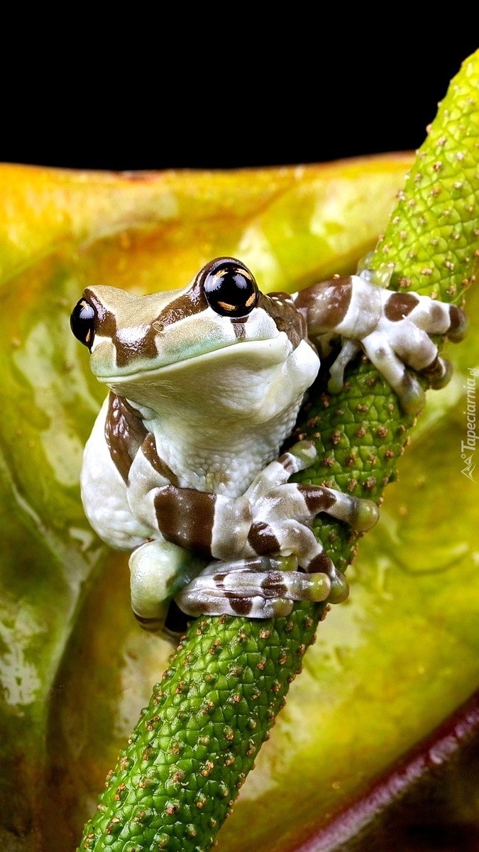 Edytor tapety: Żabka na anturium w zbliżeniu