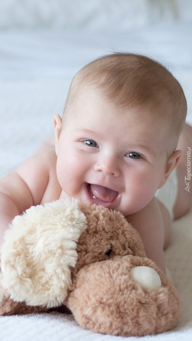 Edytor tapety: Radosne dziecko z pluszowym misiem