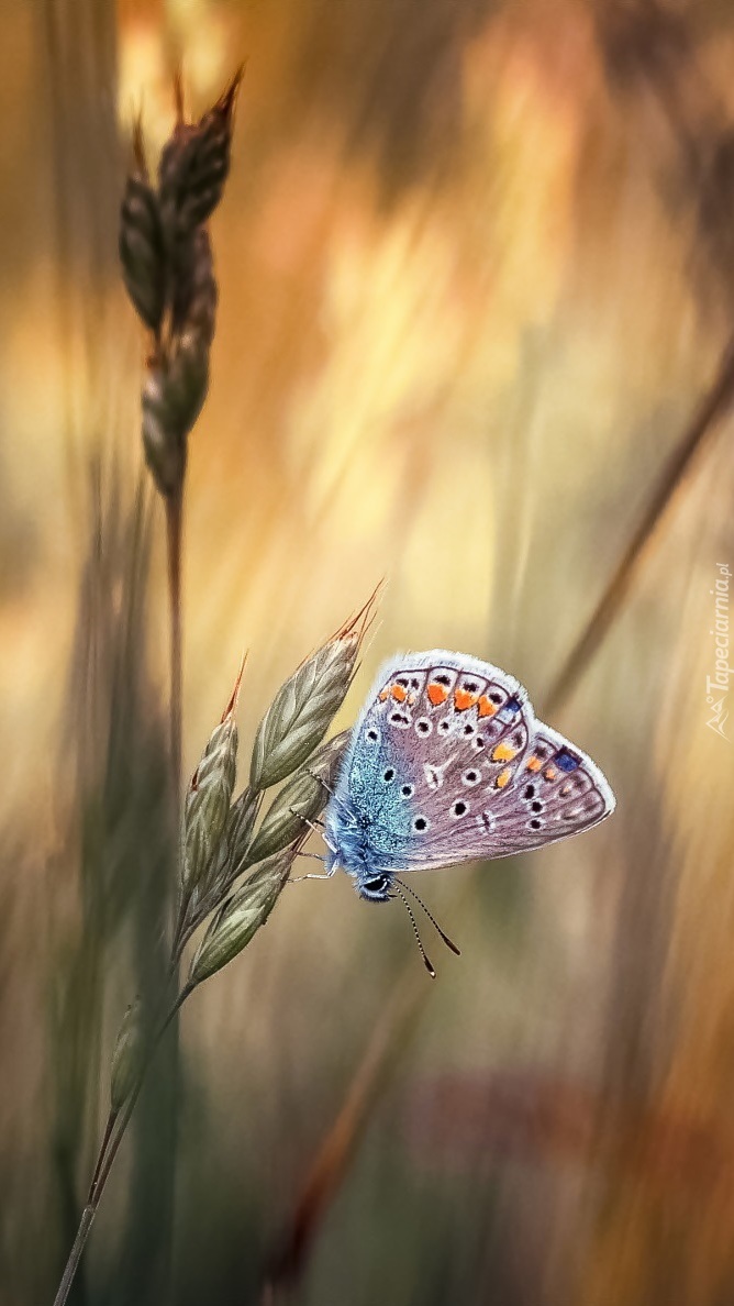 Edytor tapety: Modraszek ikar na źdźbłach trawy