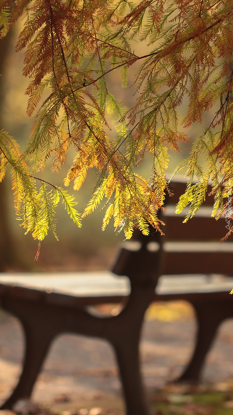 Edytor tapety: Cypryśnik z ławką w tle