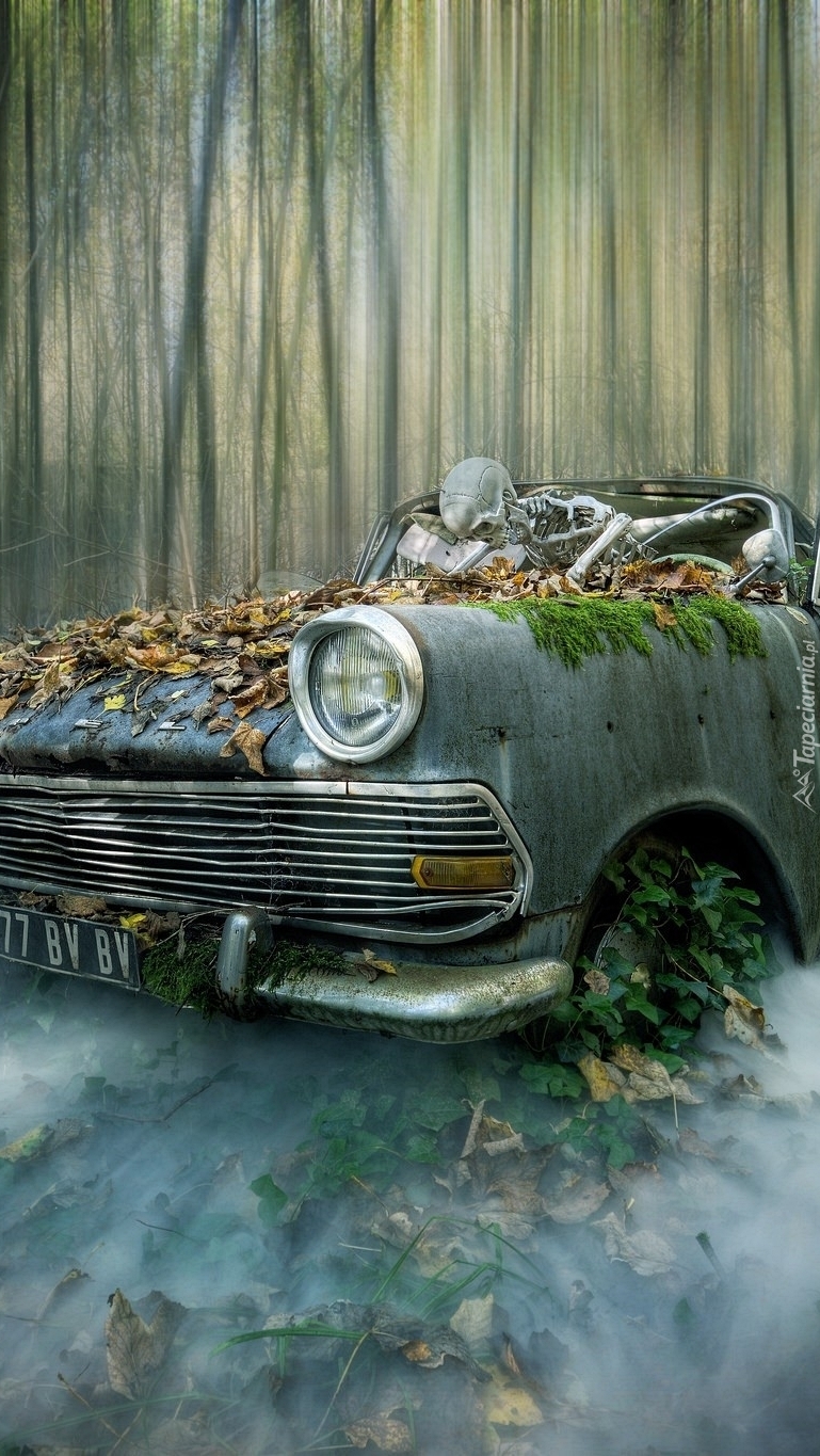Edytor tapety: Szkielet we wraku samochodu