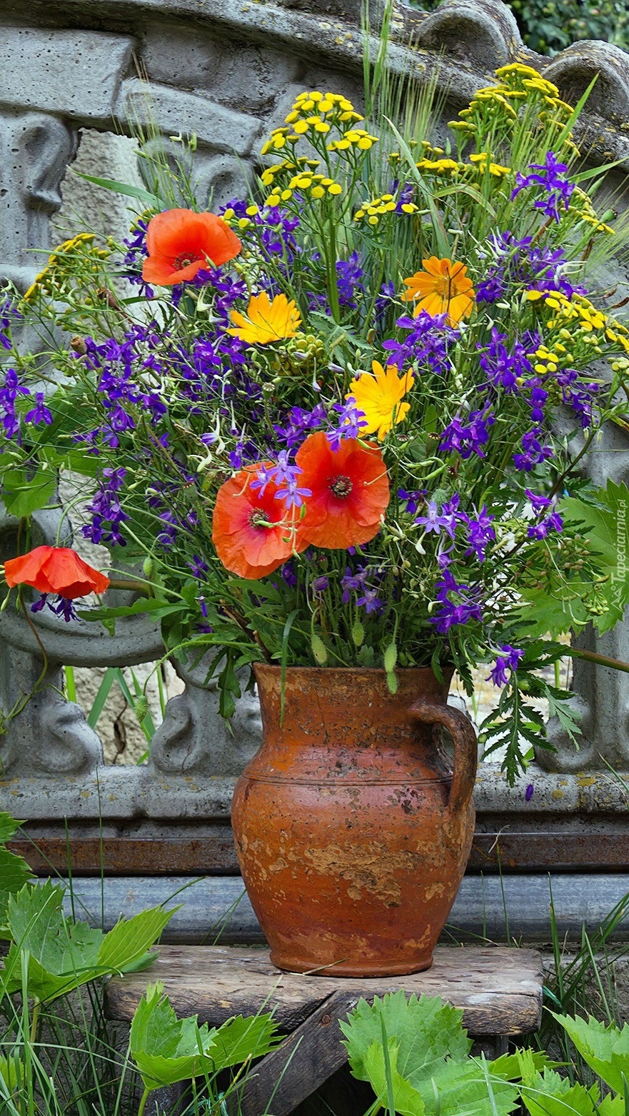 Edytor tapety: Bukiet polnych kwiatów w dzbanku