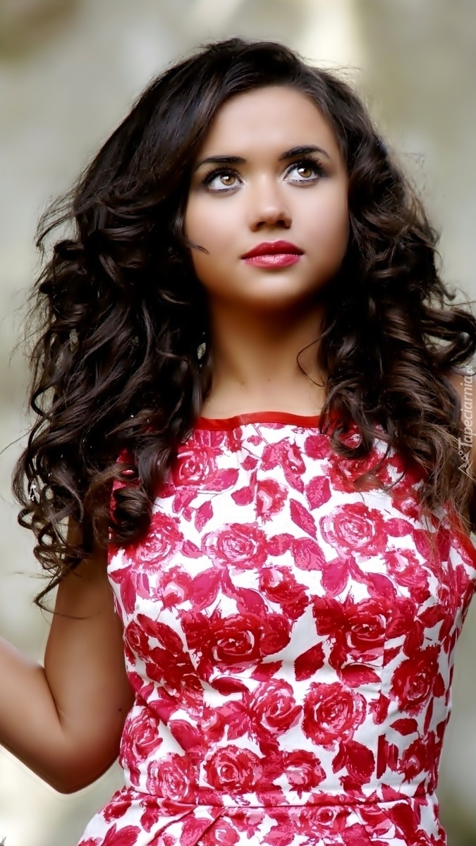 Edytor tapety: Kobieta w sukience o różanym wzorze