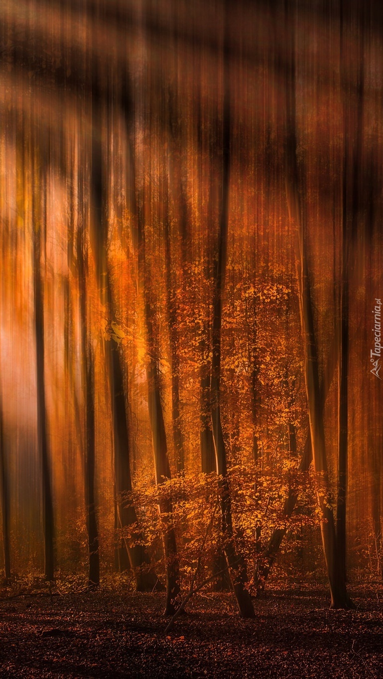 Edytor tapety: Smukłe drzewa w świetle