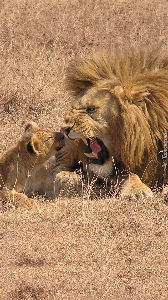 Edytor tapety: Lwiątko obok dorosłego lwa