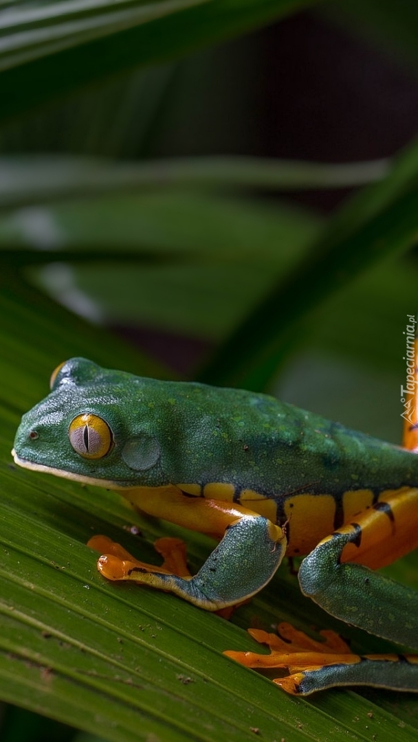 Edytor tapety: Zielono-pomarańczowa żaba na liściu