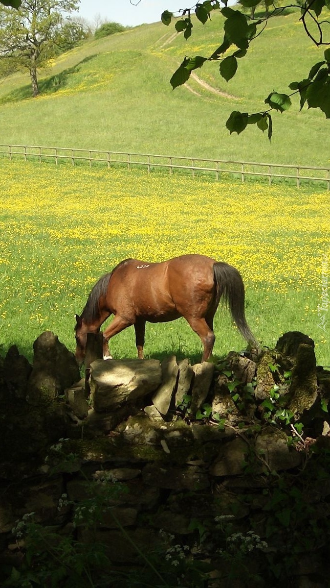Edytor tapety: Koń na ogrodzonym pastwisku