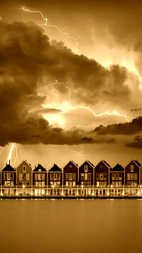 Edytor tapety: Burza nad domami w Houten i jeziorem Rietplas