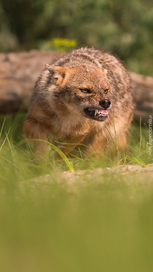Edytor tapety: Szakal z wyszczerzonymi kłami