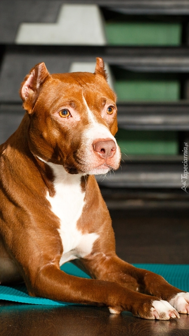 Edytor tapety: Leżący amerykański pitbull terrier