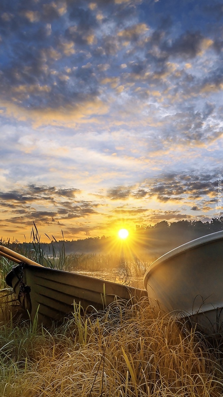 Edytor tapety: Łódki w promieniach słońca