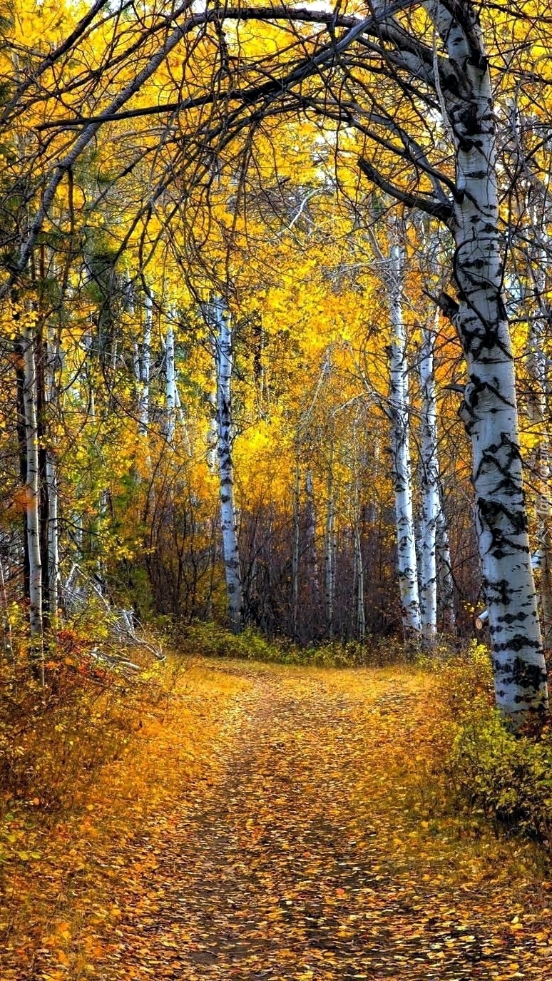 Edytor tapety: Droga przez jesienny brzozowy las