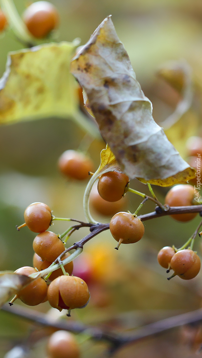 Edytor tapety: Żółte owoce z liśćmi na gałązce