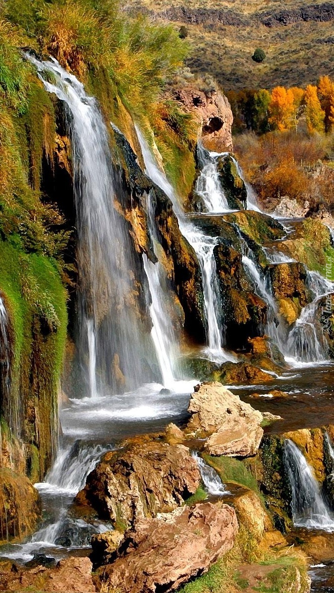 Edytor tapety: Skalny wodospad w jesiennym lesie