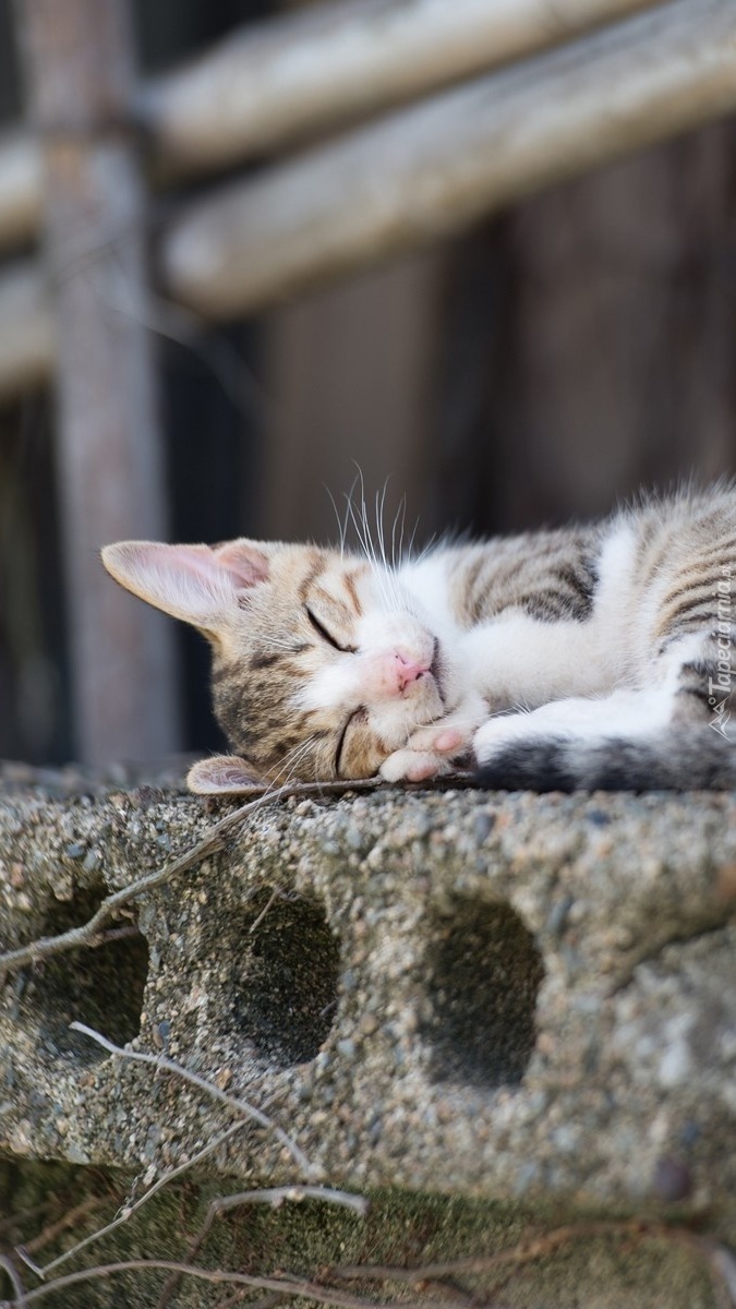 Edytor tapety: Kot śpiący na betonowej płycie