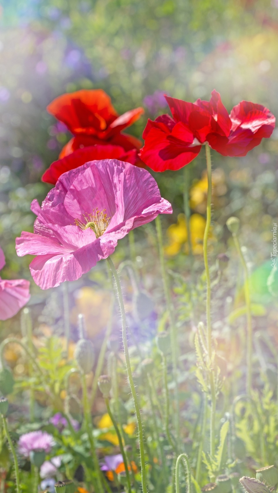 Edytor tapety: Kolorowe maki na rozmytym tle
