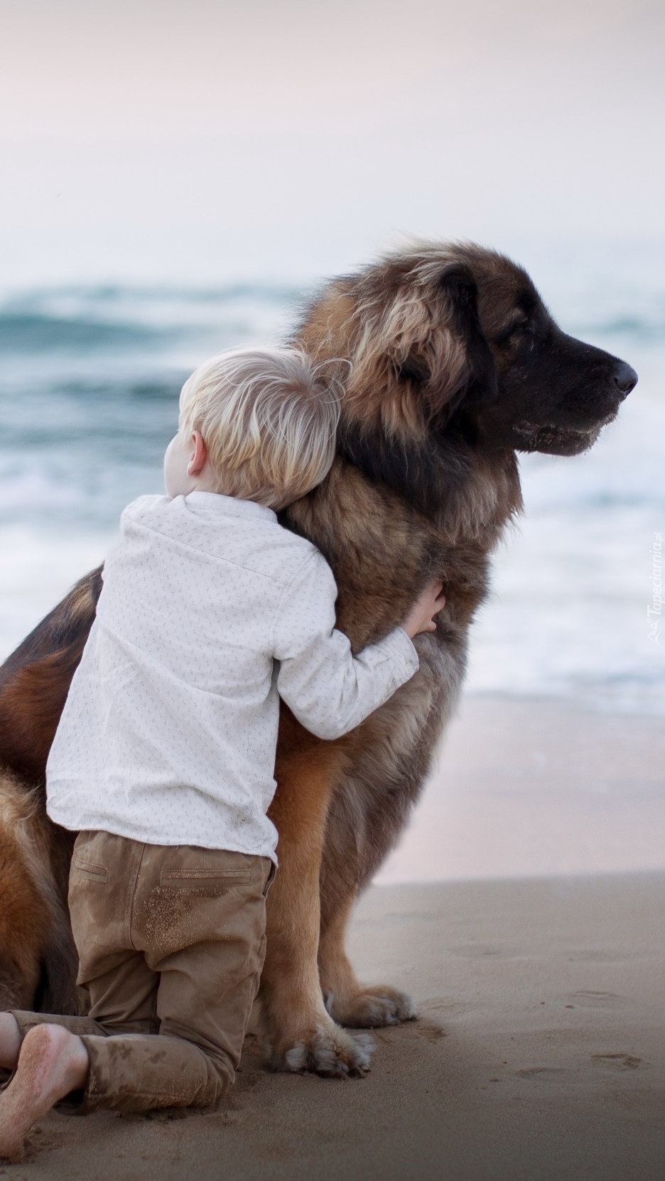 Edytor tapety: Dziecko z psem na plaży