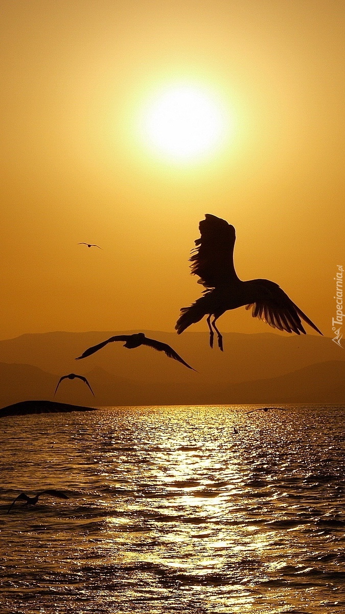 Edytor tapety: Mewy nad morzem o zachodzie słońca