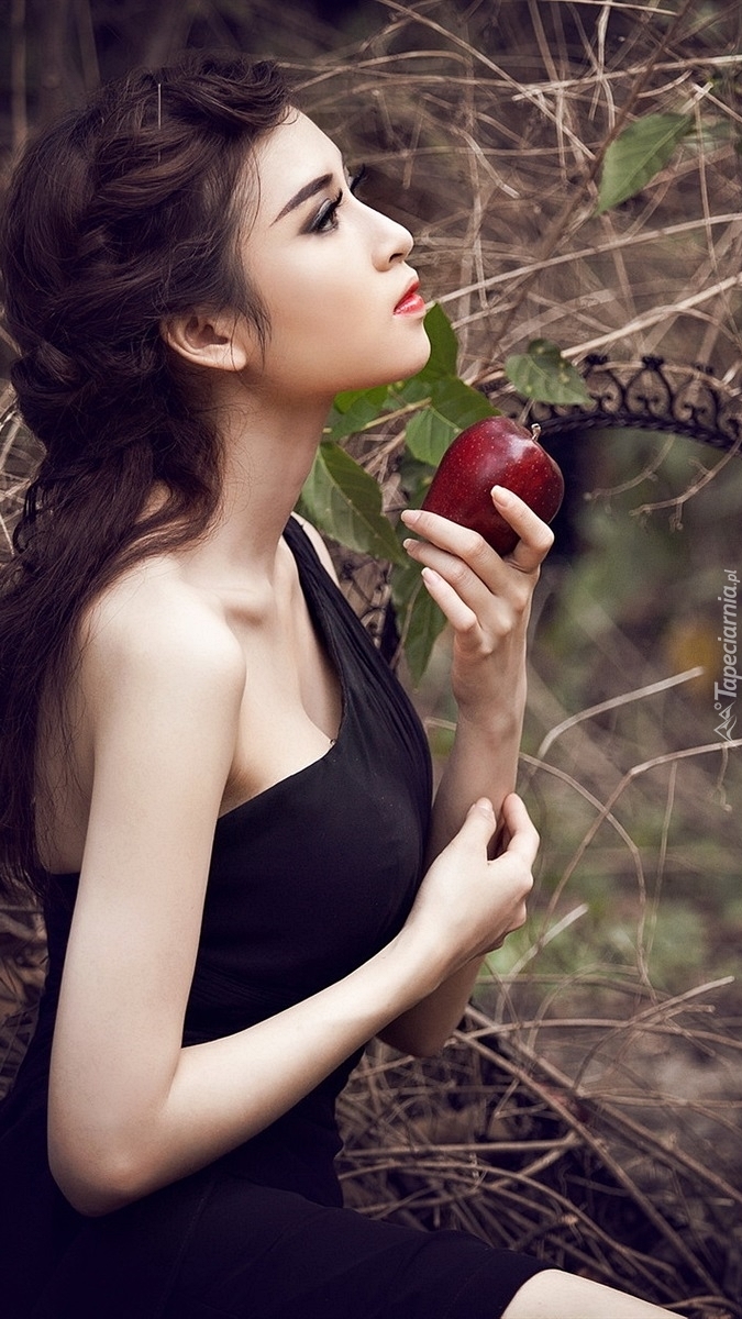 Edytor tapety: Dziewczyna z jabłkiem przed lustrem