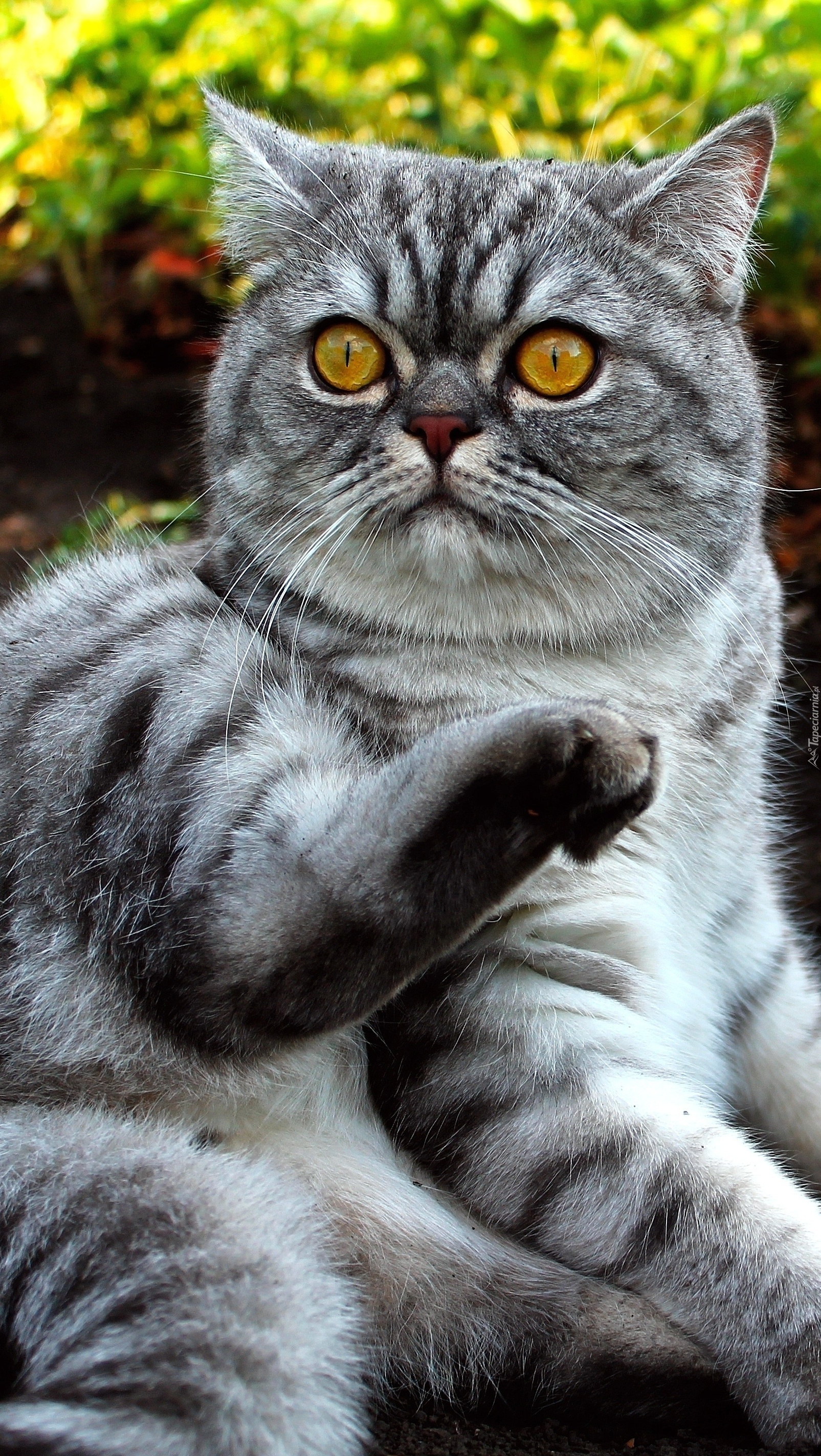 Edytor tapety: Brytyjski pręgowany kot w trawie